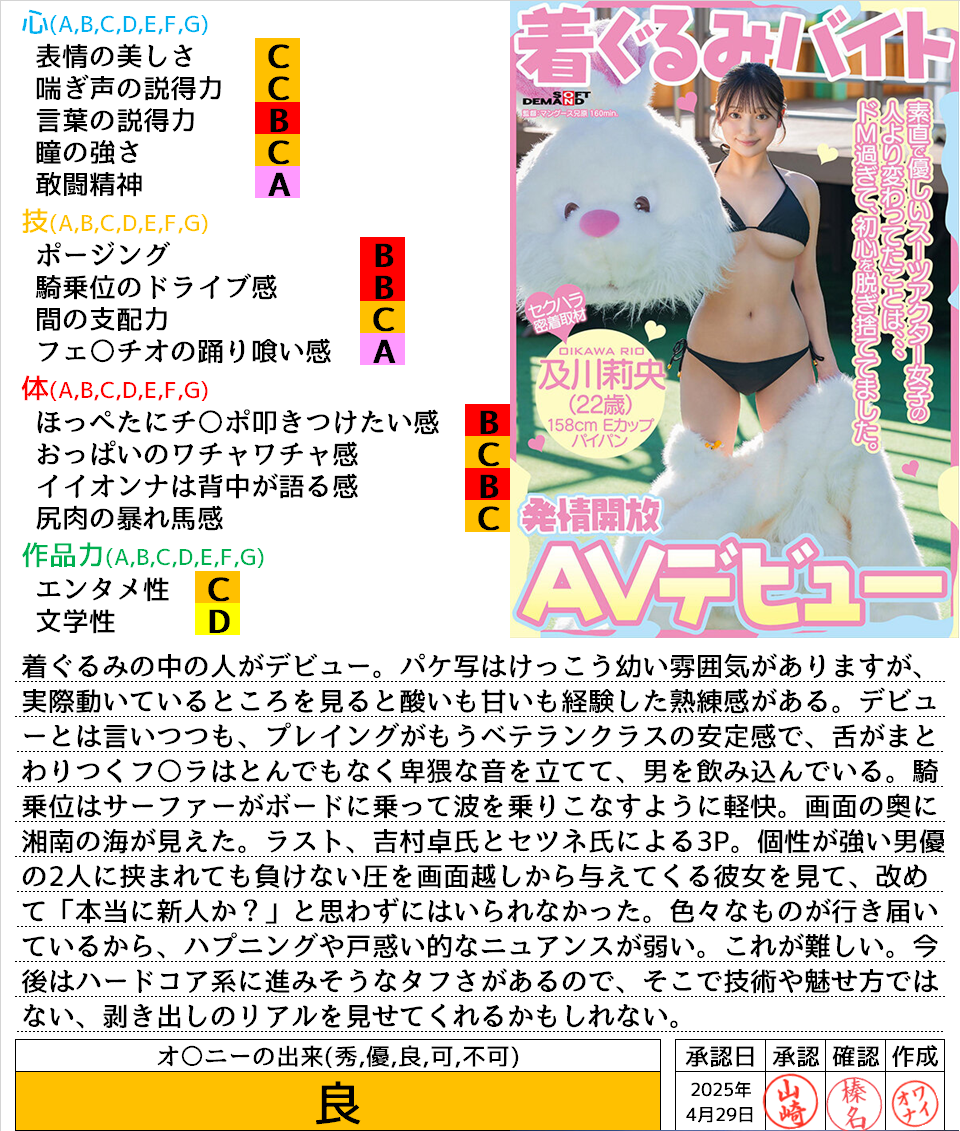 2025年4月30日に投稿 投稿者 waiona — コメントを残す【AVレビュー】着ぐるみバイトAVデビュー 素直で優しいスーツアクター女子の人より変わってたことは、、、ドM過ぎて、初心を脱ぎ捨ててました。及川莉央(22)パイパン 着ぐるみバイトAVデビュー 素直で優しいスーツアクター女子の人より変わってたことは、、、ドM過ぎて、初心を脱ぎ捨ててました。及川莉央(22)パイパン