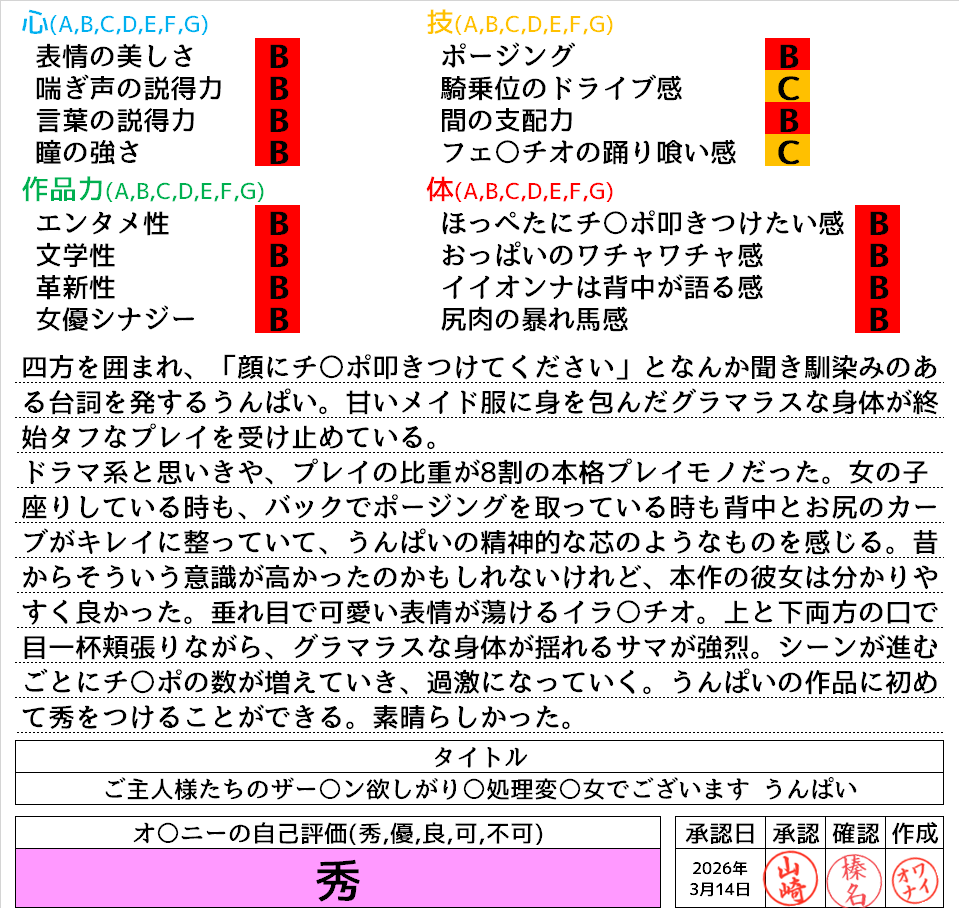 2026年3月15日に投稿 投稿者 waiona — コメントを残す【AVレビュー】ご主人様たちのザーメン欲しがり性処理変態女でございます いつでもどこでも即尺即ハメ敏感えろメイド!週末はご褒美チ○ポに囲まれて上下串刺し中出し喉射乱交パーティー うんぱい ご主人様たちのザーメン欲しがり性処理変態女でございます いつでもどこでも即尺即ハメ敏感えろメイド!週末はご褒美チ○ポに囲まれて上下串刺し中出し喉射乱交パーティー うんぱい