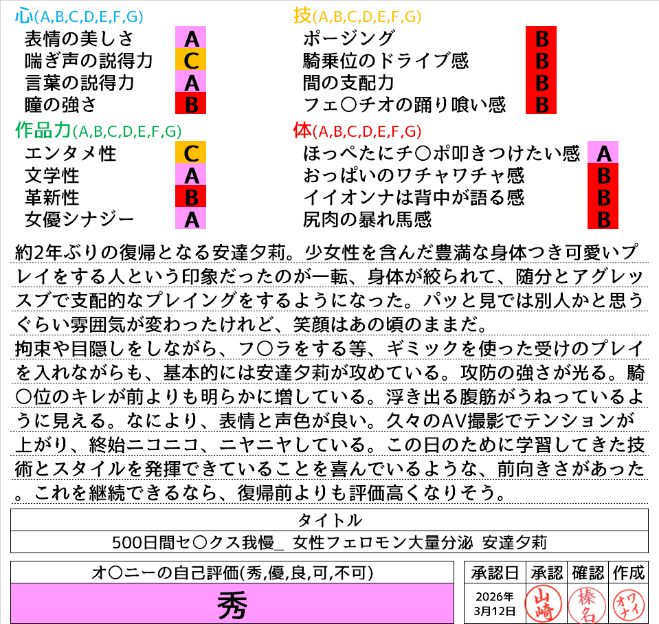 2026年3月12日に投稿 投稿者 waiona — コメントを残す【AVレビュー】500日間セックス我慢_ 女性フェロモン大量分泌! 艶っぽい顔とカラダに進化! 焦らし焦らされてからの禁欲超開放オーガズム 安達夕莉 500日間セックス我慢_ 女性フェロモン大量分泌! 艶っぽい顔とカラダに進化! 焦らし焦らされてからの禁欲超開放オーガズム 安達夕莉