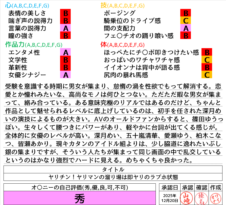 2025年12月20日に投稿 投稿者 waiona — コメントを残す【AVレビュー】ヤリチン!ヤリマンの溜り場は即ヤリのラブホ状態!!ヤリチンでもヤリマンでもない‘童貞のボク’‘ほぼ処女のワタシ’が、誘われてその場に行ったら超気まずい雰囲気になったけど結局流されちゃってヤリまくっちゃいました! ヤリチン!ヤリマンの溜り場は即ヤリのラブホ状態!!ヤリチンでもヤリマンでもない‘童貞のボク’‘ほぼ処女のワタシ’が、誘われてその場に行ったら超気まずい雰囲気になったけど結局流されちゃってヤリまくっちゃいました!