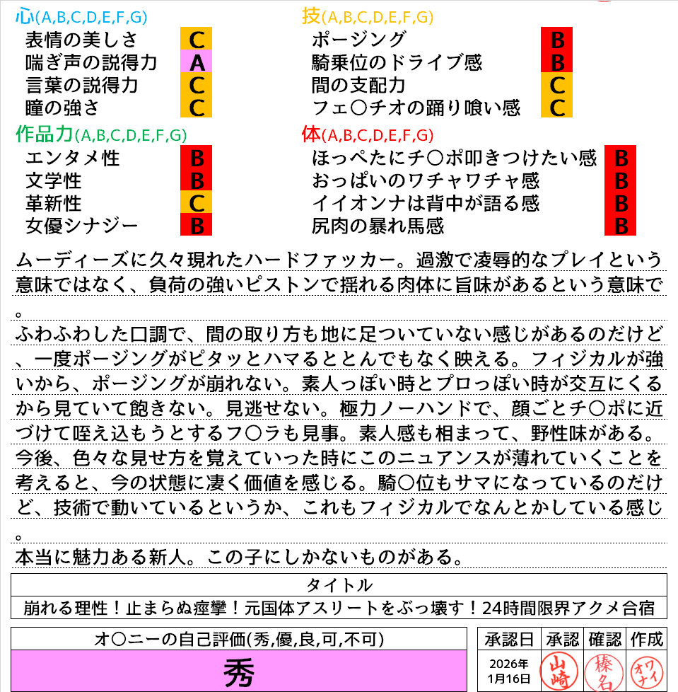 2026年1月17日に投稿 投稿者 waiona — コメントを残す【AVレビュー】崩れる理性!止まらぬ痙攣!元国体アスリートをぶっ壊す!24時間限界アクメ合宿 羽川るる 崩れる理性!止まらぬ痙攣!元国体アスリートをぶっ壊す!24時間限界アクメ合宿 羽川るる