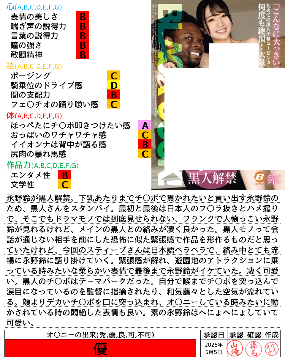 2025年5月6日に投稿 投稿者 waiona — コメントを残す【AVレビュー】初めての黒人チ●コ!ビンカンなカラダはガマン出来ずに何度も絶頂!大量中出し!「こんなに大っきいの…壊れちゃうよ…」 BLACK COCK! 永野鈴 初めての黒人チ●コ!ビンカンなカラダはガマン出来ずに何度も絶頂!大量中出し!「こんなに大っきいの…壊れちゃうよ…」 BLACK COCK! 永野鈴