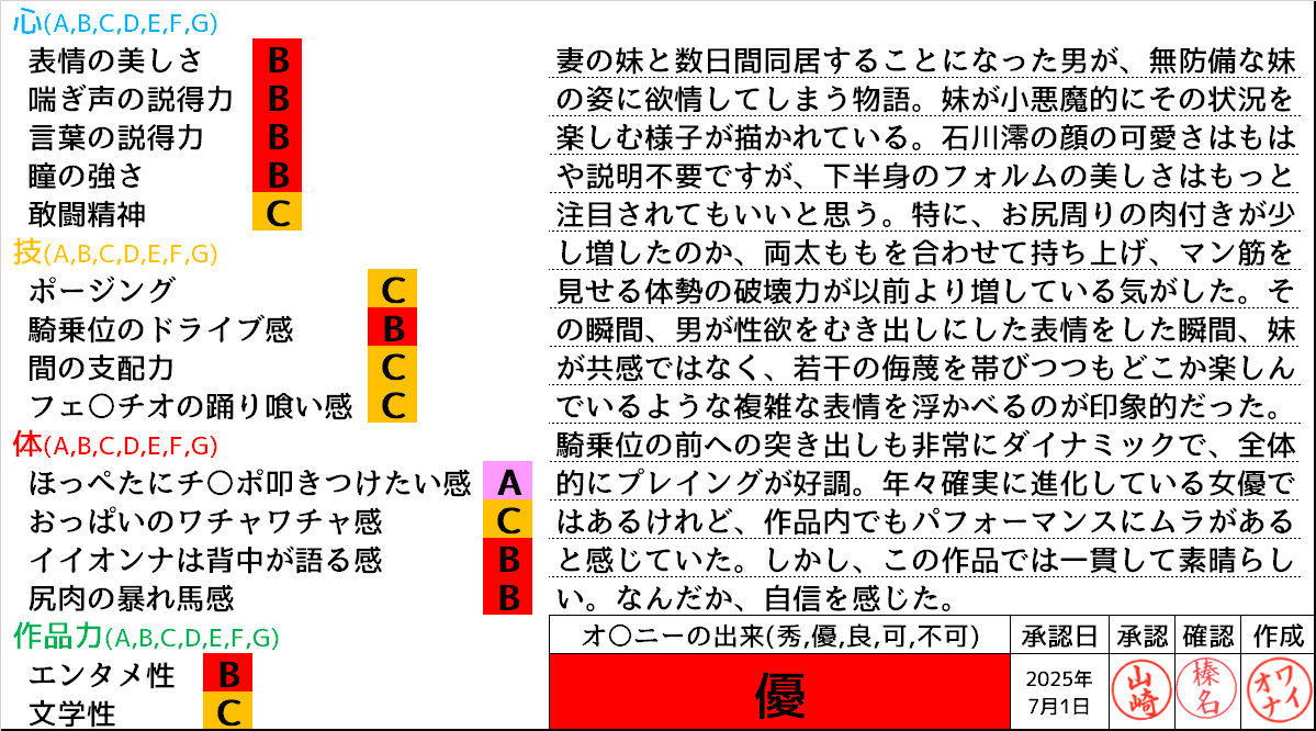 2025年7月1日に投稿 投稿者 waiona — コメントを残す【AVレビュー】嫁の妹・澪の’ぷにマン’挑発に理性崩壊!欲情ピストンで不倫しちゃってる僕。 石川澪 嫁の妹・澪の’ぷにマン’挑発に理性崩壊!欲情ピストンで不倫しちゃってる僕。 石川澪