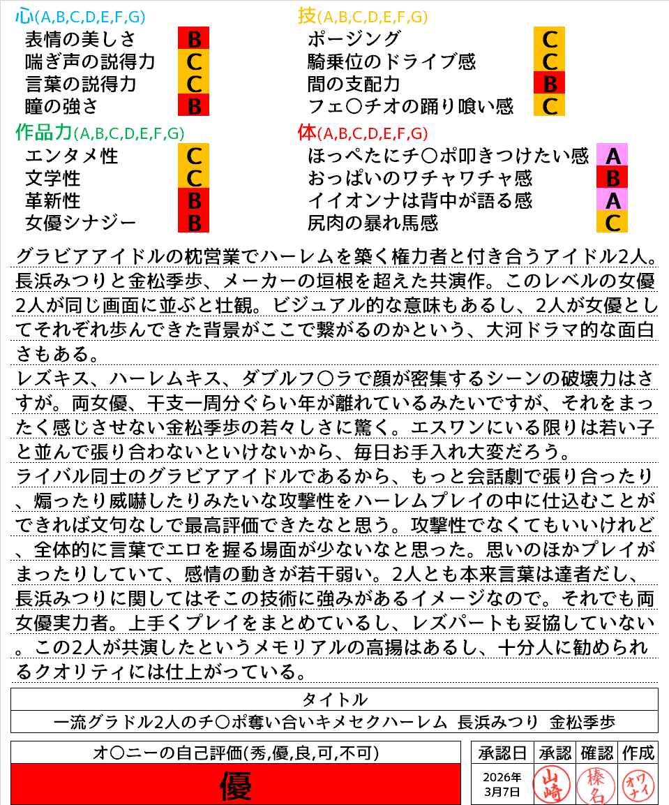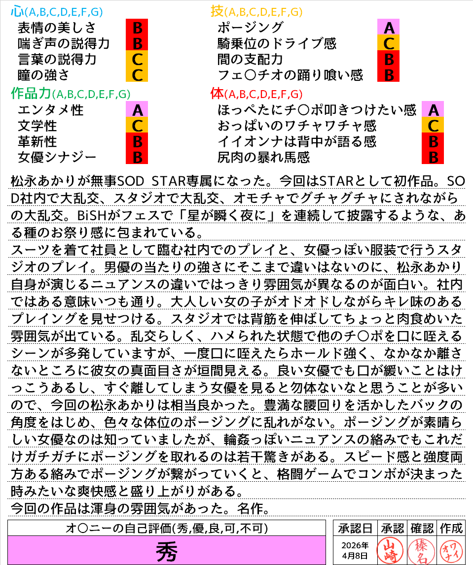 2026年4月9日に投稿 投稿者 waiona — コメントを残す【AVレビュー】【特典版】松永あかり SODSTAR研修デビュー 初乱交×3 発射×42 【特典版】松永あかり SODSTAR研修デビュー 初乱交×3 発射×42