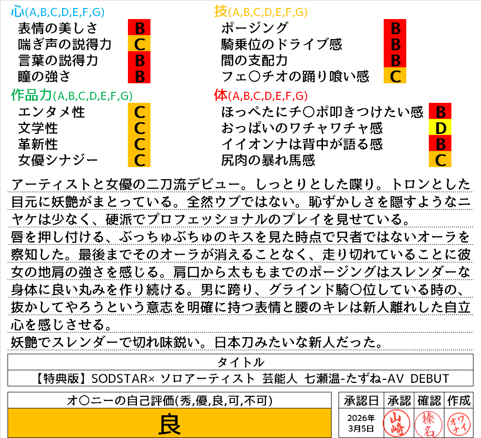 2026年3月6日2026年3月6日に投稿 投稿者 waiona — コメントを残す【AVレビュー】【特典版】SODSTAR×ソロアーティスト 芸能人 七瀬温-たずね-AV DEBUT 【特典版】SODSTAR×ソロアーティスト 芸能人 七瀬温-たずね-AV DEBUT